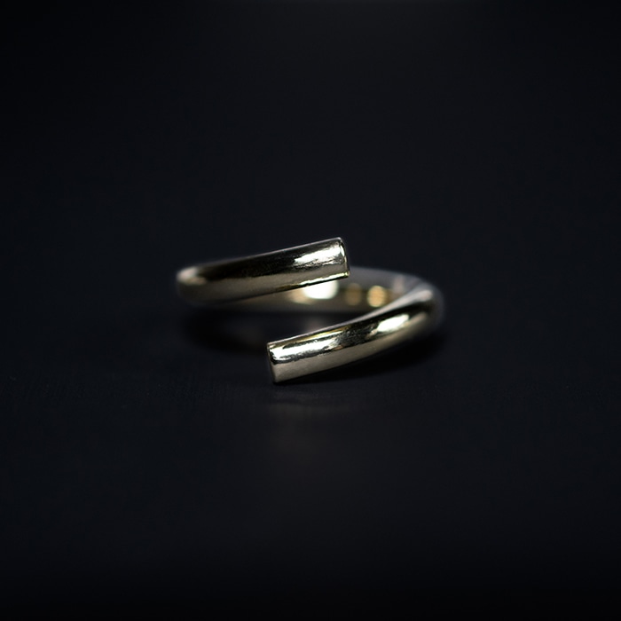 リング全体を鏡面まで丁寧に磨き上げ、真鍮の素材感と造形の美しさを際立たせました。