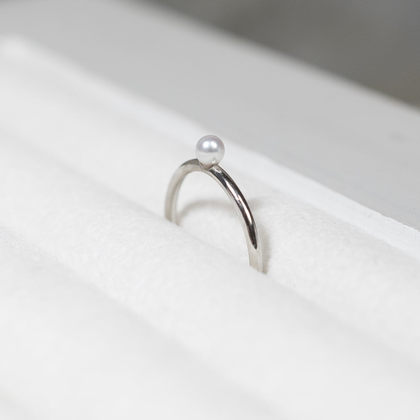 セッティングした真珠は6月の誕生石。古くから貴重品として大事にされ、柔らかな光沢と天然ならではの優しい色合いが魅力です。