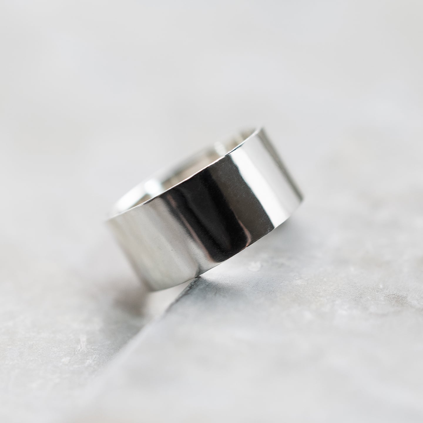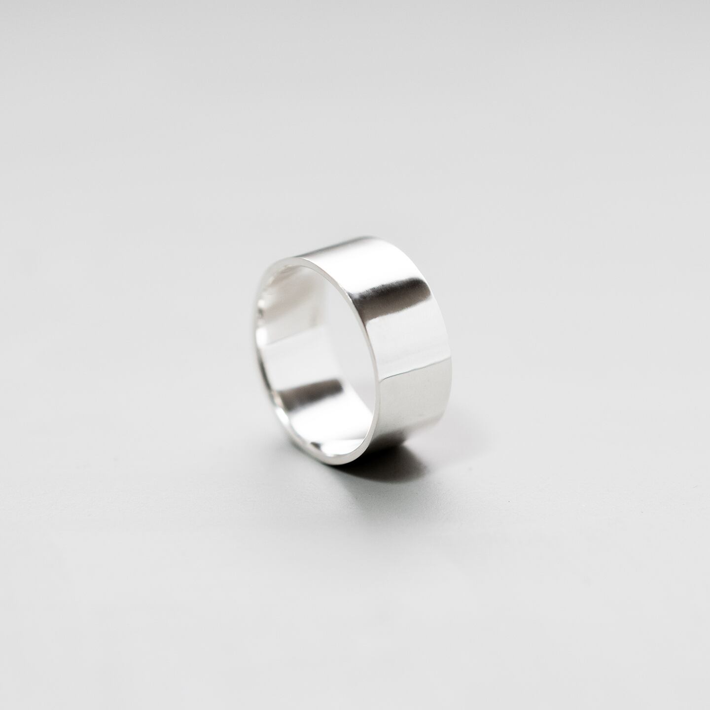 鏡面まで磨き上げた光沢感が印象的な、Silver 950製の平打ちリング。